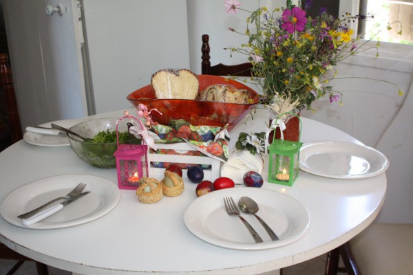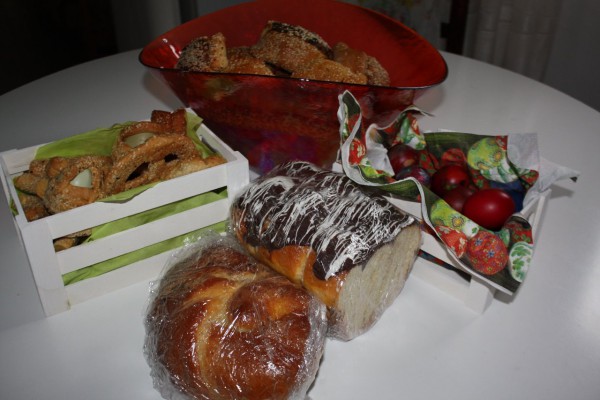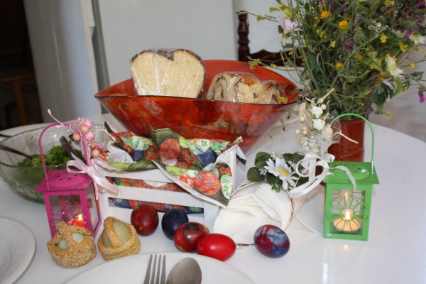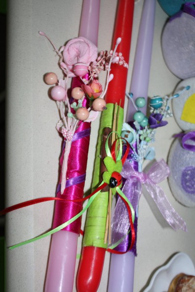 Τσουρέκια, φλαούνες, κουλουράκια, αυγά, λουλούδια, λαμπάδες,